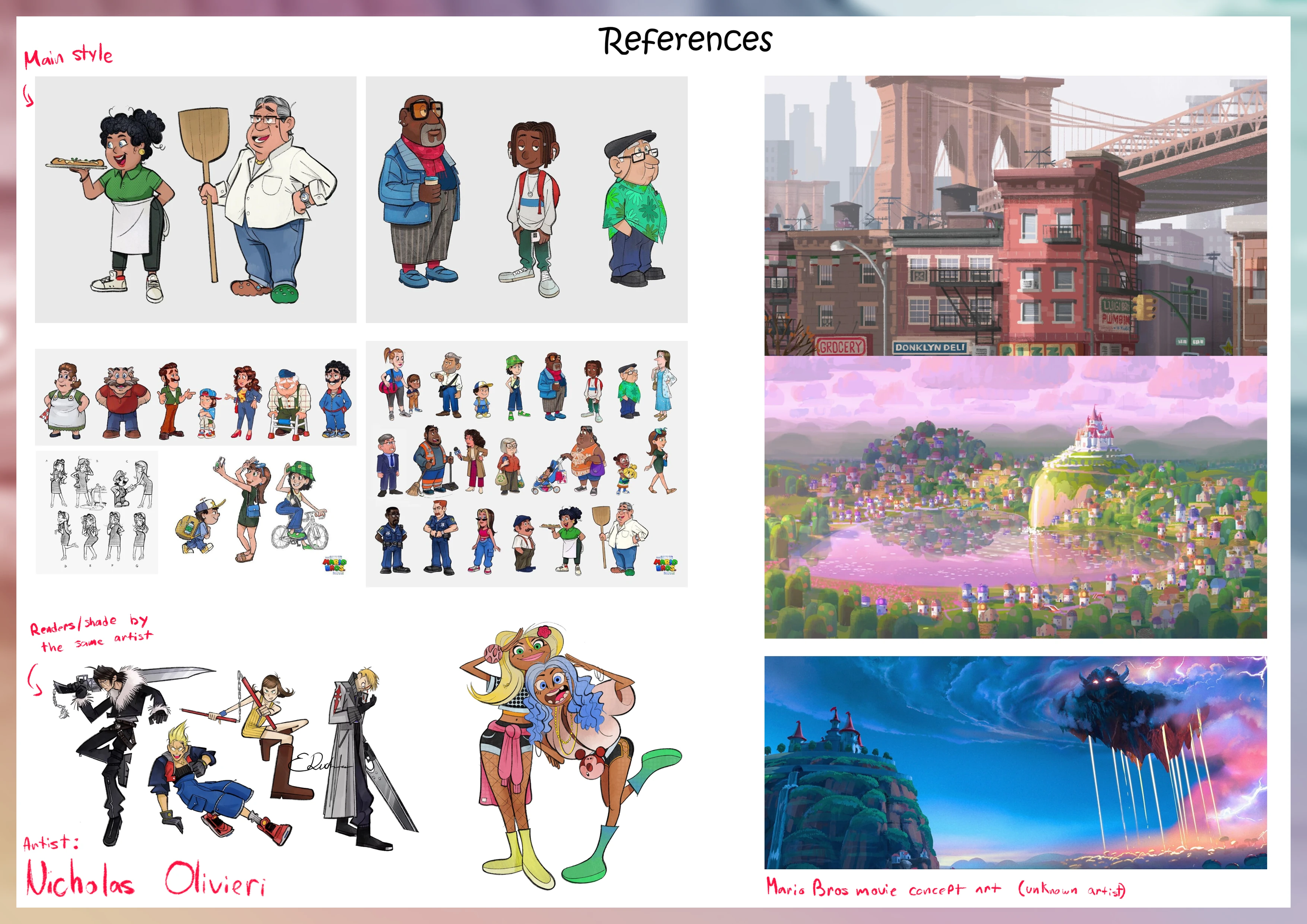 Design de trois personnages imitant le style artistique des personnages du film The Super Mario Bros. Movie (2023).